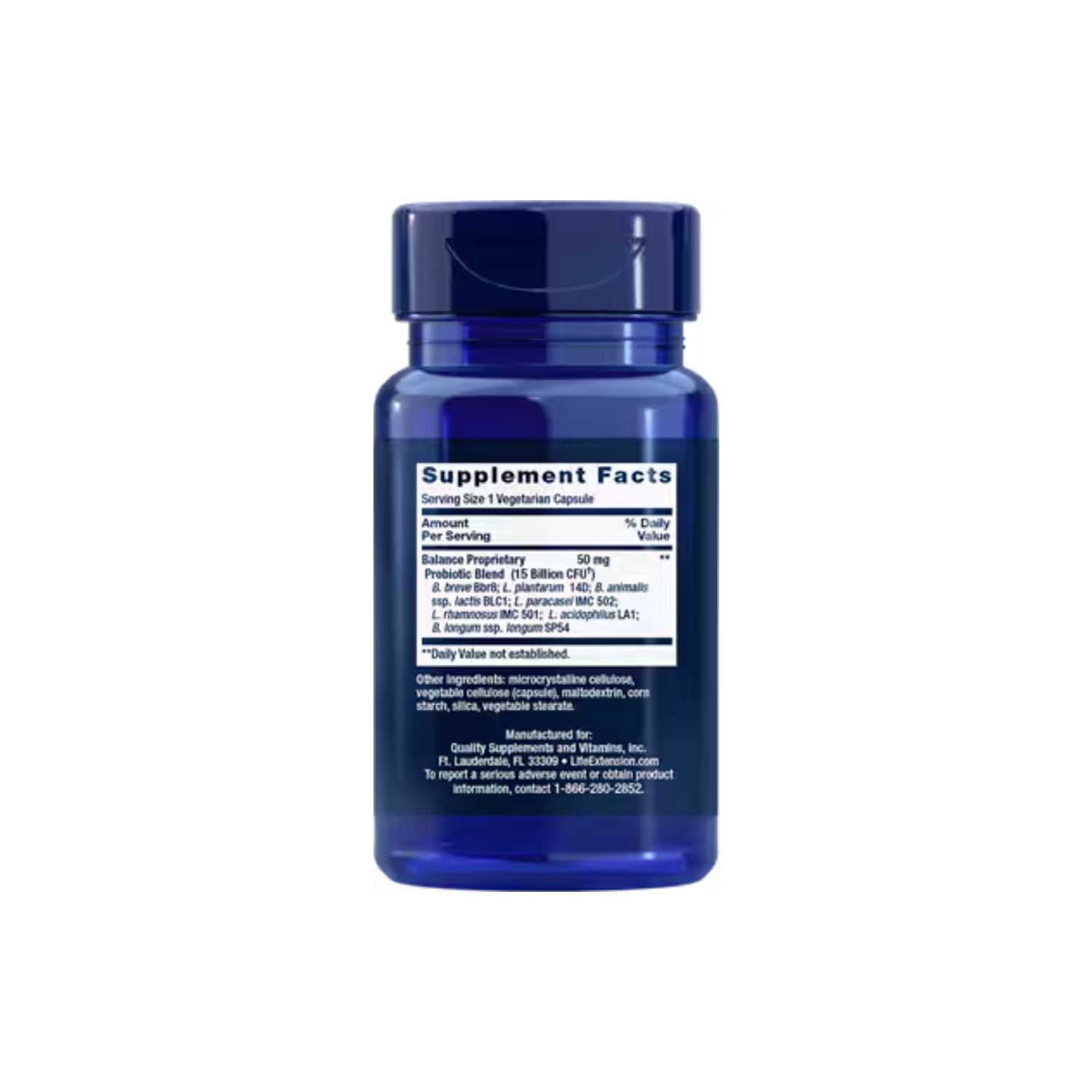Каждая вегетарианская капсула содержит 15 миллиардов КОЕ (колониеобразующих единиц) и включает 7 штаммов полезных бактерий: